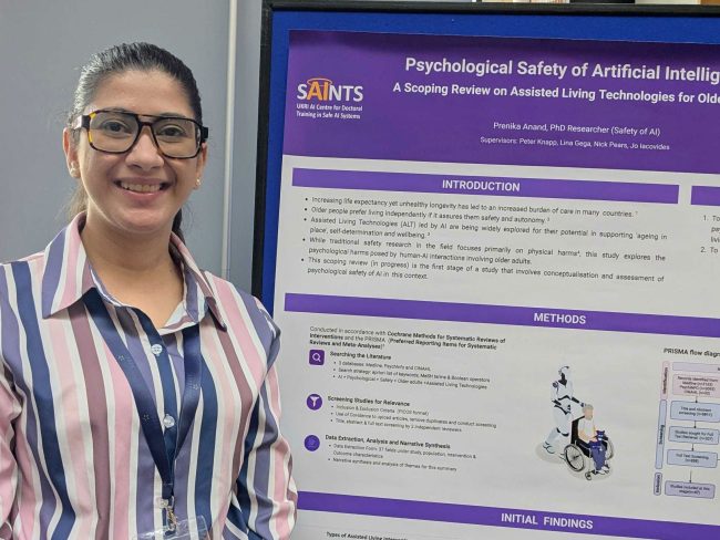 Two first-year SAINTS PhD researchers, Nina Seron and Ellaie McClean, introduced the two SAINTS research teams, each focusing on a linked team challenge: Safe Human-AI Collaboration; and Safety of AI-Enabled Robotics.